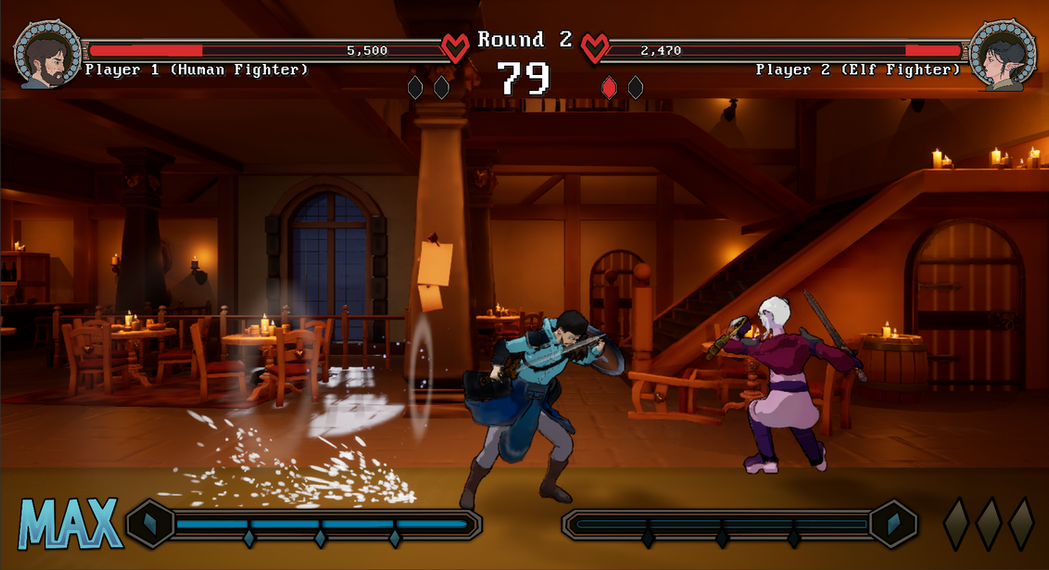 A fast paced, easy to learn, 2.5D fighting game inspired by tabletop fantasy that features class and race customisation to determine fighter move sets and parameters.
